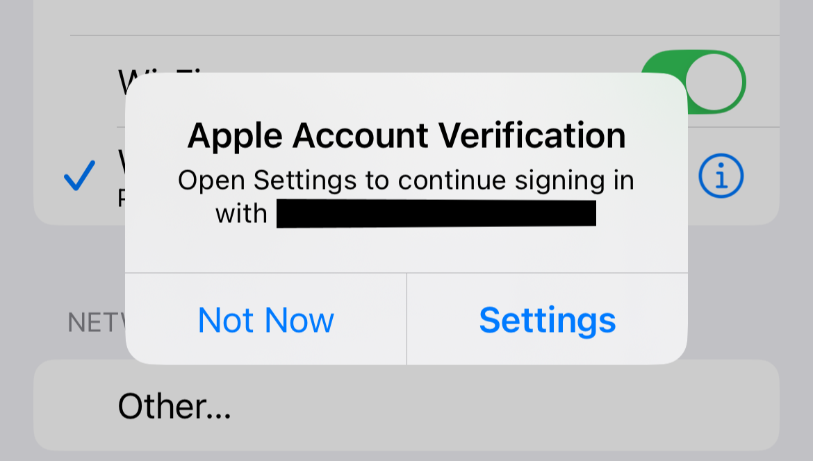 Cancel out of the popup and open the "Settings" app. Under your name at the top, you should see a box that says "Update Apple Account Settings".