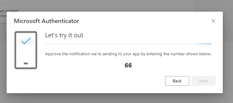 In the Let's try it out pane in your web browser, you will see a number. Type the number into the Are you trying to sign in? box in the Authenticator app on your phone and tap Yes.