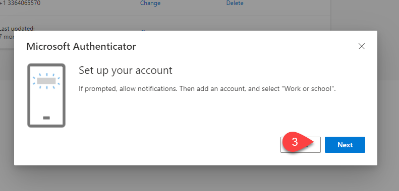 If you have already installed the Authenticator app on your phone, click Next.