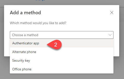 Choose Authenticator app from the drop-down menu and click Add.