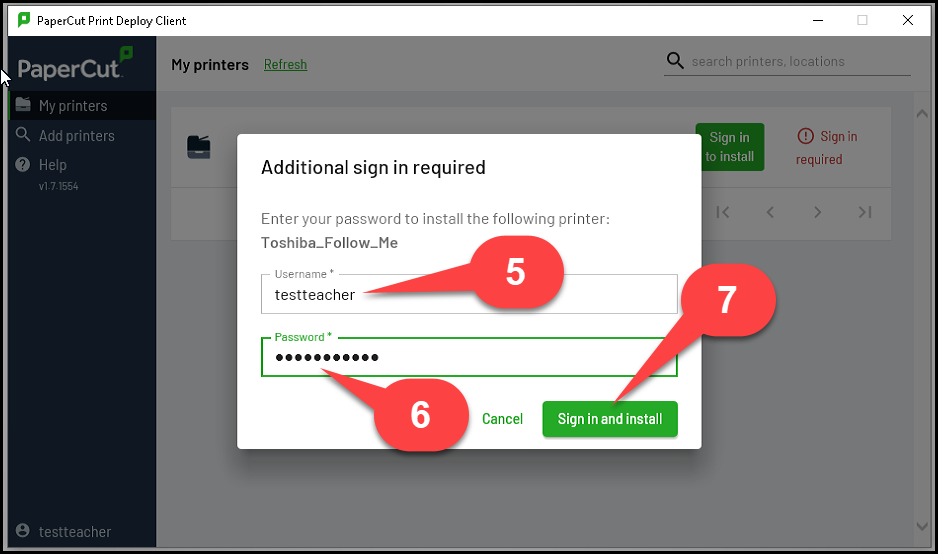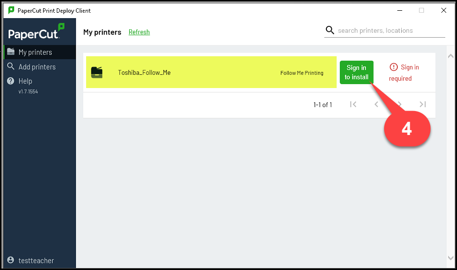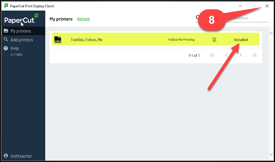 Once the Papercut Print Deploy app is installed, we will be able to deploy print queues to your laptop. The first and most important print queue will be the 'Toshiba_Follow_Me' queue. This is the universal print queue that will allow you to release your print job on any copier in the district.